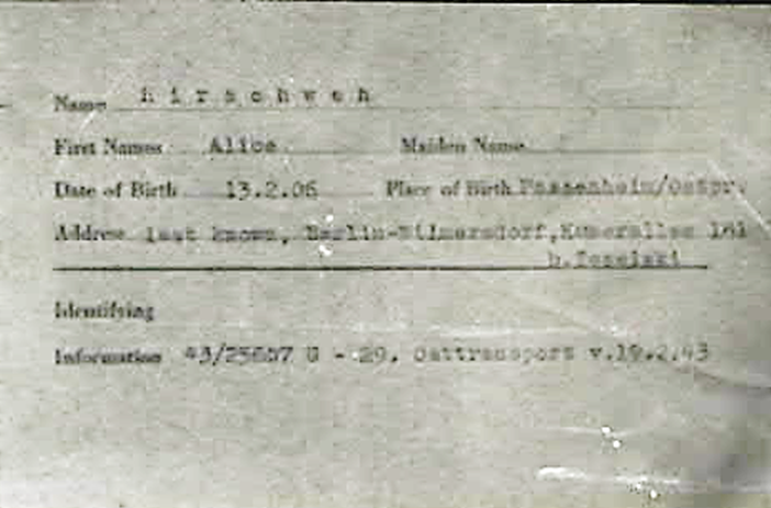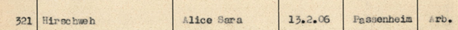 19.2.1942 Alice Hirschweh auf dem 29. Osttransport von Berlin nach Auschwitz