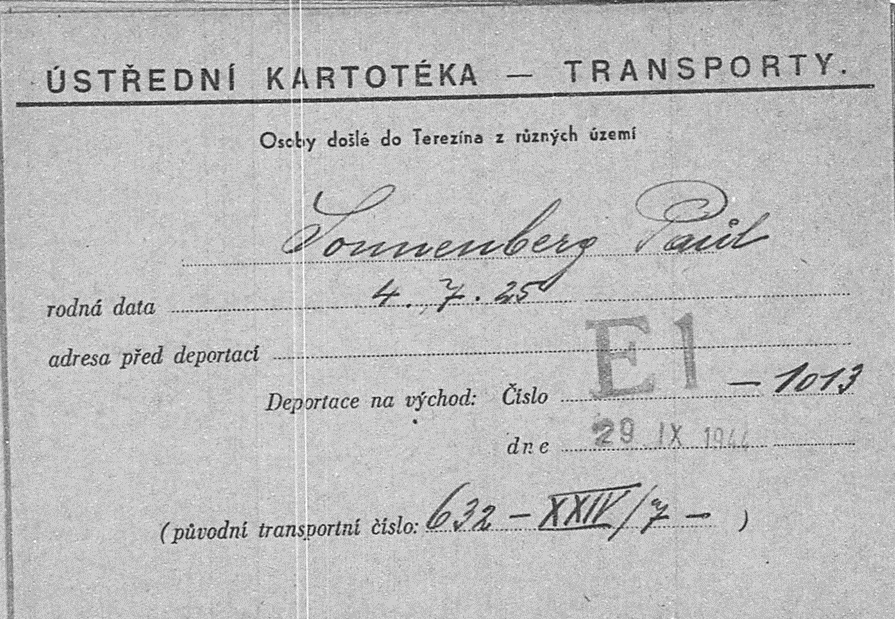 29.9.1944 Bruder Paul auf dem Transport E l von Theresienstadt nach Auschwitz