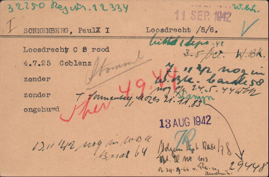 11.9.1942 Bruder Paul Sonnenberg eingewiesen in das polizeiliche Judendurchgangslager Westerbork
