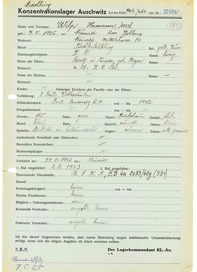 Herbert Wilp *12.6.1928 in Immendorf Koblenz; ✡ März 1943 in Auschwitz