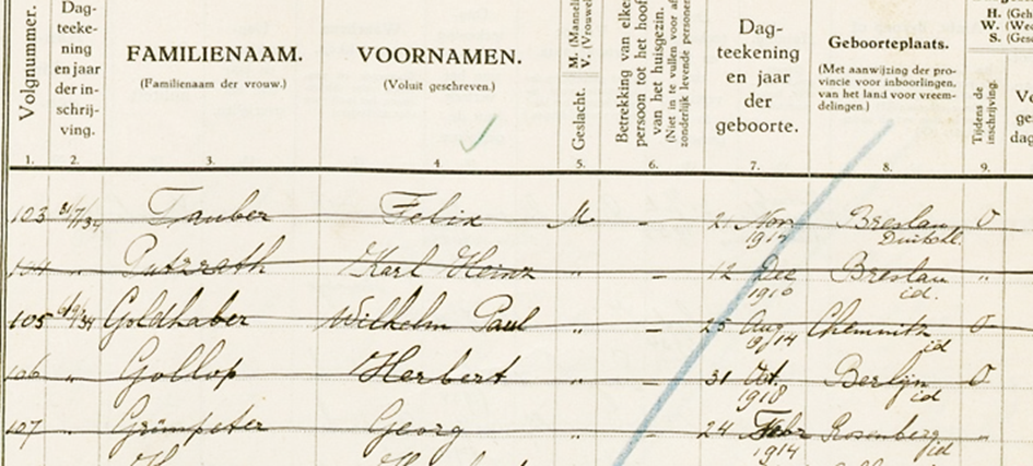 23.1.1935 Georg Grünpeter abgemeldet aus dem Werkdorp, „ambtshalve“ ins „buitenland“, zusammen mit Felix Tauber (*1917 in Breslau) und Herbert Gollop (*1918 in Berlin);
