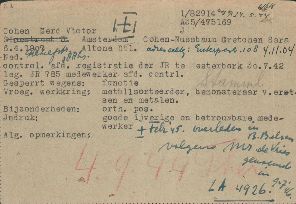 30.7.1942 Bruder Gerd wird Kontrolleur des Joodse Raad in der Registratur von Westerbork