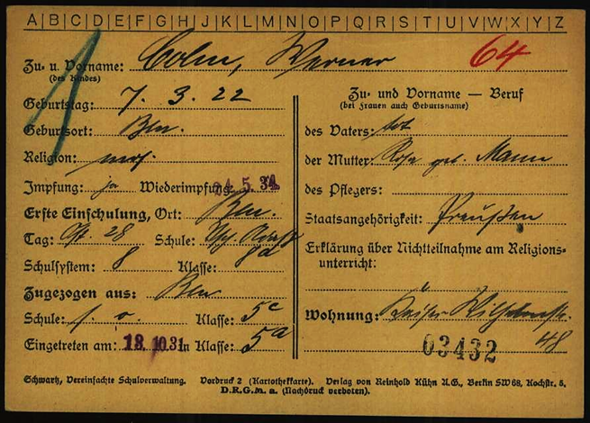 Werner Cohn *7.3.1922 in Berlin; ✡20.4.1940 Brandenburg a. d. Havel