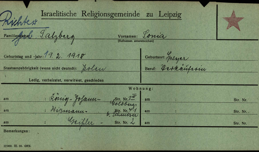 Mutter Hertha bei den Großeltern Wolf und Regina Joseph sowie Onkel Erich in Chemnitz, Agricolastraße 9/ I.