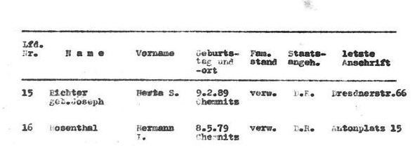 13.7.1942 Mutter Herta auf dem Transport Leipzig- Chemnitz nach Auschwitz