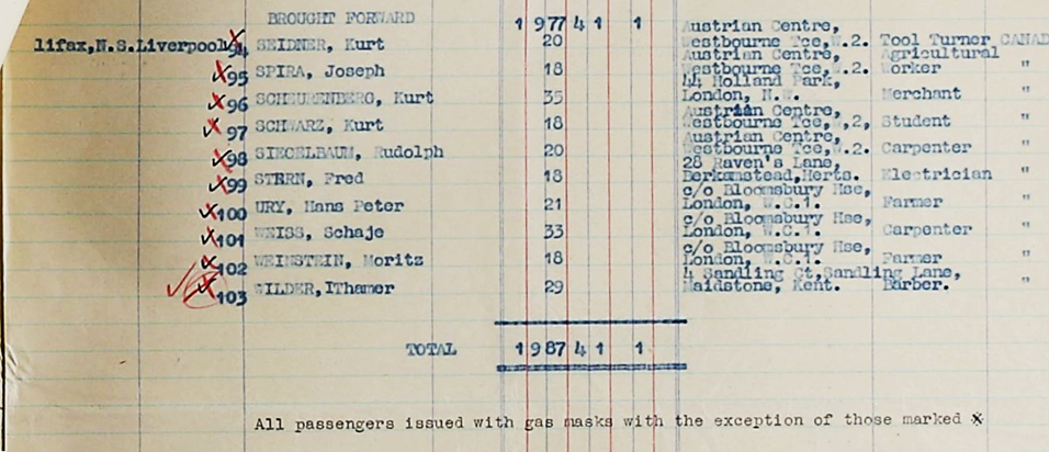 29.3.1942 Rückkehr von Moritz Weinstein aus Sydney über Auckland von 1987 Deportierten „aliens“ nach Liverpool auf der HMS CAPETOWN CASTLE; Ziel Bloomsbury House, die Zentrale des Hechaluz in London