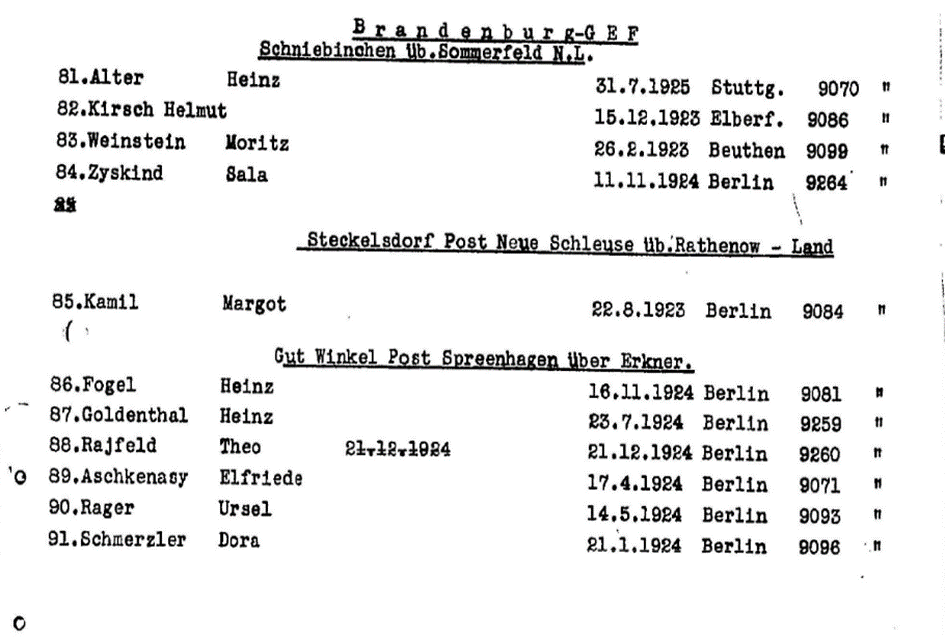 Jüdische Jugendhilfe Schniebinchen über Sommerfeld NL, Telefon: Niewerle Nr. 11