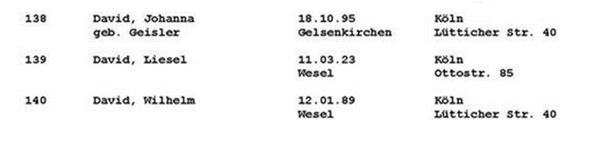 Liesel David *11.3.1923 in Rees, Wesel; in Riga ✡?