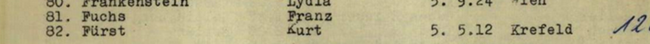 Oktober 1945 Kurt Fürst auf der Mitgliederliste des Hechaluz Schweden, Alte Chaluzim