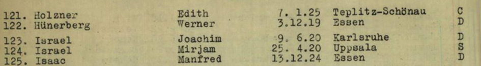 Oktober 1945 Manfred Isaac auf der Mitgliederliste des Hechaluz Schweden, Alte Chaluzim