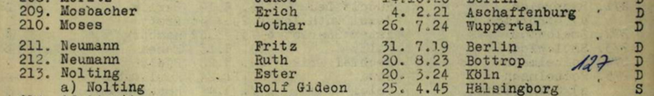 Oktober 1945 Lothar Moses auf der Mitgliederliste des Hechaluz Schweden, Alte Chaluzim