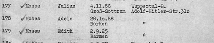 Edith Moses *2.9.1925 in Barmen; ✡ nach 1941 in Minsk
