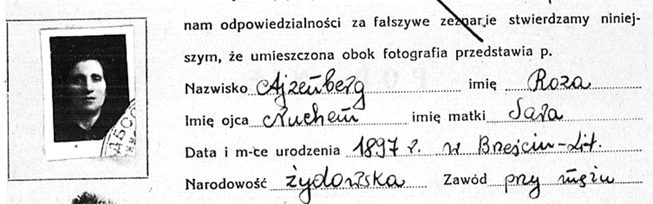 Mutter Rosa Eisenberg *27.3.1898 in Sosnowitz; ✡ ?