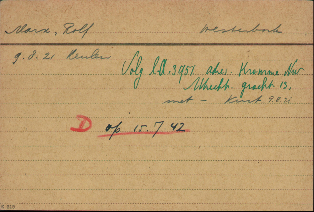 15.7.1942 Die Zwillinge Kurt und Rolf sowie Simon Reifen, Leo Verständig, Richard Greif, Leo und Tobias Feigenblatt zusammen mit CousinMax Rack im ersten Transport ab Westerbork nach Auschwitz; aus dem Lager waren hierfür 100 „Oude kampbewoner“ selektiert worden. In Verkennung der Gefahr vertrat der Hechaluz die Ansicht, die Chaluzim sollten sich für diesen ersten Transport freiwillig melden.