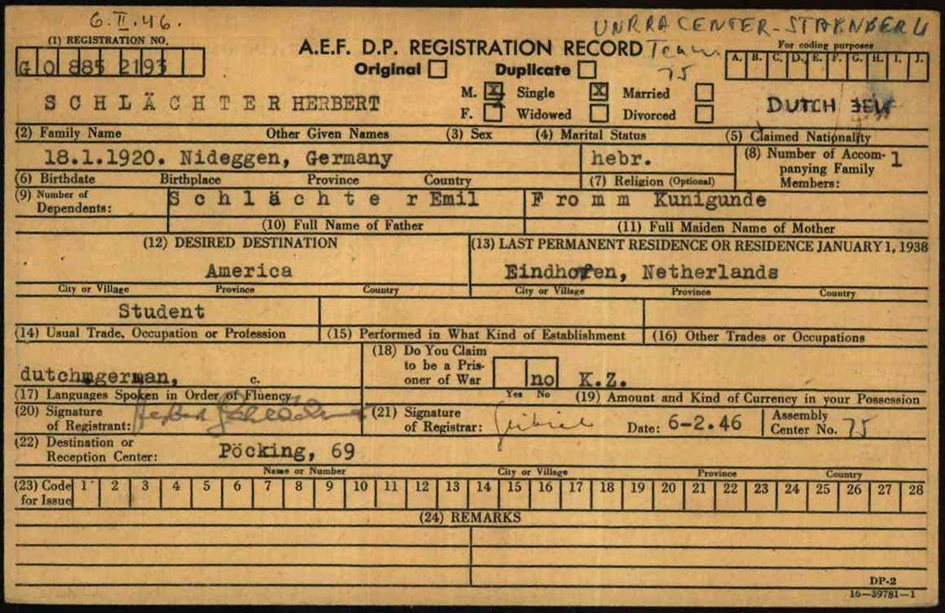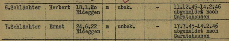 fälschliche Angabe, 1944 in Auschwitz und 1945 in Dachau gewesen zu sein; Bruder Ernst ist in Dachau-Mühlberg befreit worden