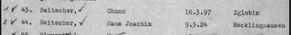 August 1944 Chune mit Sohn Hans-Joachim Beitscher deportiert nach Auschwitz