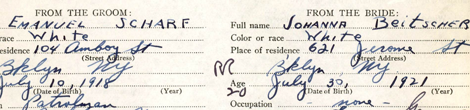 5.5.1942 Heirat in Brooklyn mit Emanuel Scharf, Patrolman