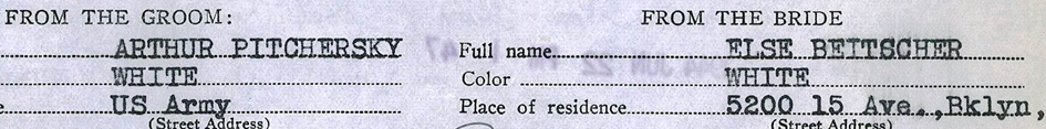22.6.1944 Heirat von Schwester Else in Brooklyn mit Arthur Pitchersky