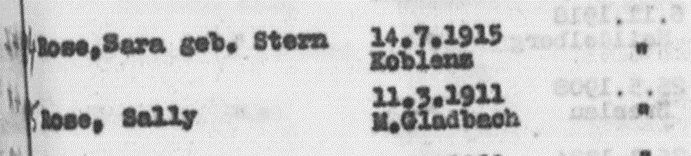 Sally Rose*11.3.1911 in München Gladbach; in Auschwitz; oo 12.4.1939 Hilde Stern (*14.7.1915 in Koblenz; ✡ 4.3.1943 in Auschwitz)