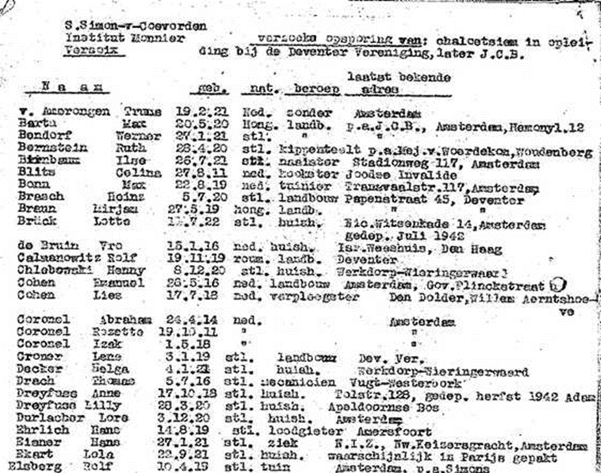 21./22.4.1942 Deportation der Mutter Caroline aus Mönchengladbach ab Düsseldorf nach Izbica zusammen mit der Familie von Amalie Tykoschinski