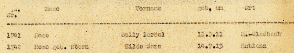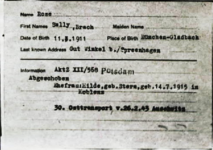 Sally Rose, Jg. 1911, deportiert 1941, ermordet in Auschwitz
