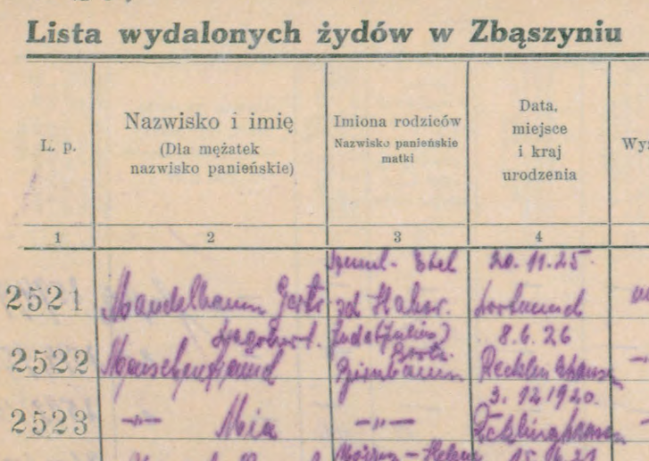 28.10.1938 abgeschoben nach Sbaszyn mit der Familie