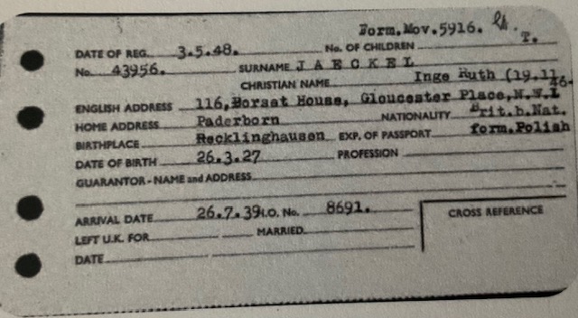 23.2.1948 Naturalisation als englische Staatsbürgerin; Beruf: Kinderkrankenschwester