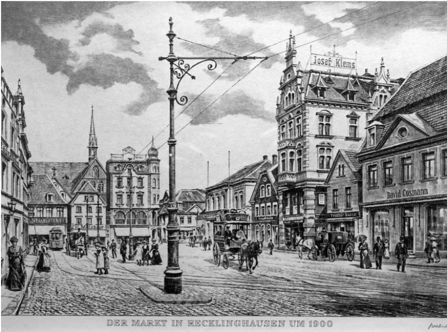 Georg Möllers/Horst D. Mannel, Zwischen Integration und Verfolgung. Die Juden in Recklinghausen. Eine Sammlung ausgewählter Dokumente (= Dokumentenmappen zur Kirchen- und Religionsgeschichte des Ruhrgebiets, hg. v. Helmut Geck, Bd. 2), Recklinghausen 1988; Dokument 10; Anzeige in der RZ 7.9.1904