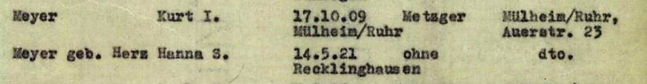 Heirat 18.10.1941 in Recklinghausen Kurt Meyer *17.10.1909 in Mülheim; Metzger
