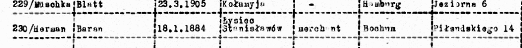 „Du wolltest wissen, welche Bochumer Familien von der Ausweisung nach Polen betroffen wurden: Es waren Brand, Baron, Flaumenhaft, Segall, Unger, Sporn, Ziegellaub, Schreiber, Zucker, Lauber, Wiener, Goldwerger, Insler, Lustmann, Schmerler, Jäckel, Rosenheck, [unleserlich], Herschberg, Plesser, Weißmann, Literat, Goldberger ich und noch einige alleinstehende Personen, die ich nicht beim Namen kenne. Ich will nun Schluß machen und würde mich freuen, bald wieder etwas von Dir zu hören. Lebe wohl und sei herzlichst gegrüßt in Freundschaft von Deiner Frau Rosel Naftalie“