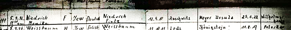 Moses Max Aron Niedrig *14.7.1912 in Lemberg/Lwow; oo Ester Nogatsch