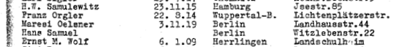 Maresi Oelsner auf der Gestapoliste des vom Makkabi Hazair im Gut Winkel ausgerichteten Führerkursus mit 64 Teilnehmern aus Deutschland