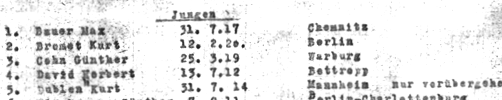 Oktober 1945 Günther, Lotti und Uri Cohn auf der Mitgliederliste des Hechaluz Schweden, Alte Chaluzim