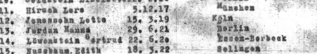 Heirat 1938 in Köln Lotte Jonassohn *15.3.1919 in Köln; ✡2016 in Haifa