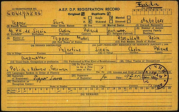 15.12.1945 Sara Tepper registriert im UNRRA-Assembly Center Nr. 138 in Fulda