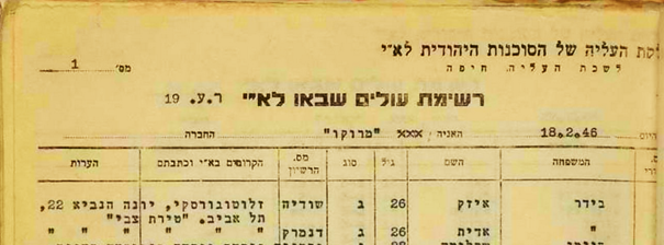 18.2.1946 Alija nach Palästina, individuelle Einreise von Edith und Isaak Bieder auf der SS MAROKKO in Haifa