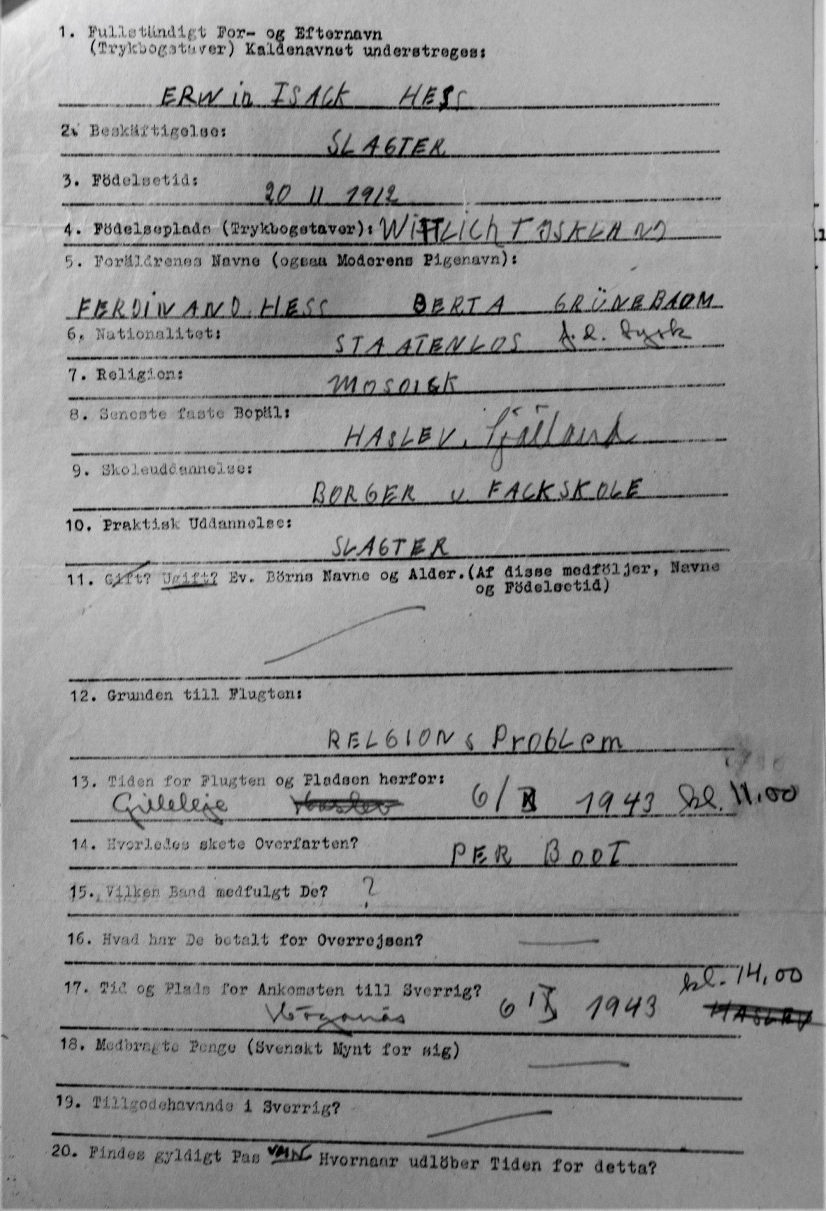 Heirat Erna Hess *1913 Dänemark; ✡20.11.1967 Dänemark
