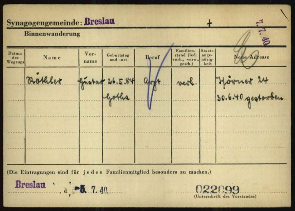 17.5.1939 Vater Gustav Röthler in Breslau, Schwerinstraße 45/47