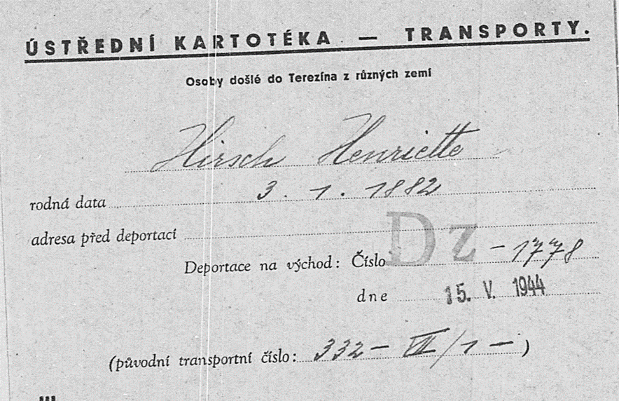 15.5.1944 Mutter Else auf dem Transport D z von Theresienstadt nach Auschwitz