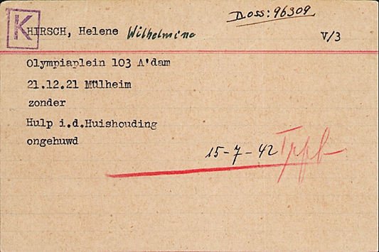 15.7.1942 Helene und Eva in der Dritten Großen Amsterdamer Razzia verhaftet und nach Hooghalen deportiert;
