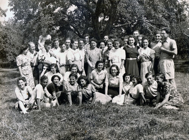„Huize Voorburg“ 1942; Mieke de Groot sitzend ganz rechts, Hans Seemann stehend 5. Von rechts