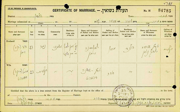 Heirat 7.2.1947 in Givat Mieke Michal de Groot *21.9.1923 in Almelo; ✡ 19.9.2010