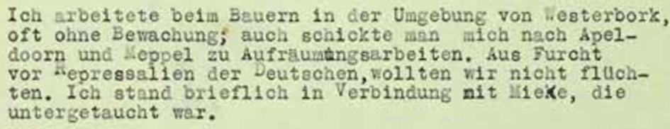 Sie steht in brieflichen Kontakt mit Hans Seemann im Kamp Westerbork.