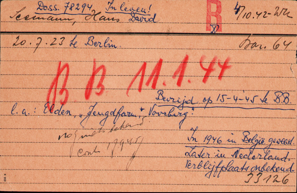3.10.1942 Razzia im Huize Voorburg, Verhaftung von 36 der 40 Chaluzim in Elden und Verbringung ins „Polizeiliche Judendurchgangslager Westerbork“, dazu zählen auch der Leiter von Huize Voorburg Ernst Cosmann, Kurt Pollack aus Bochum, Rosa Kratzer aus Dortmund und ihr Verlobter Gerd Sternlicht (*16.7.1924); Leo Goldschmidt (*26.7.1924) und Verlobte Clara Helena Leefsma (*15.9.1924)