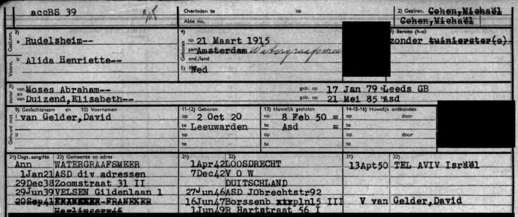 Heirat 8.2.1950 David van Gelder *2.10.1920 in Leeuwarden