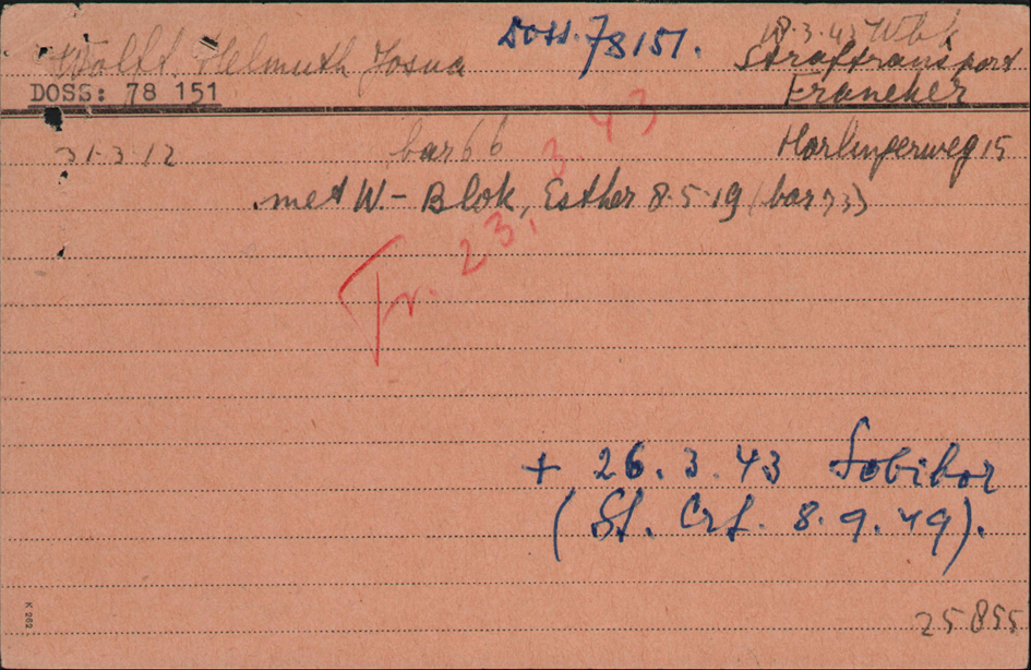 18.3.1943 Helmut Wolff kommt als Strafgefangener in die zusätzlich bewachte Strafbaracke 66.