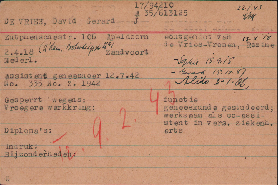 12.7.1942 Bruder David nach seinem Medizinstudium als Arzt in die Psychiatrie Centraal Israëlitisch Krankzinnigengesticht „Het Apeldoornsche Bosch“