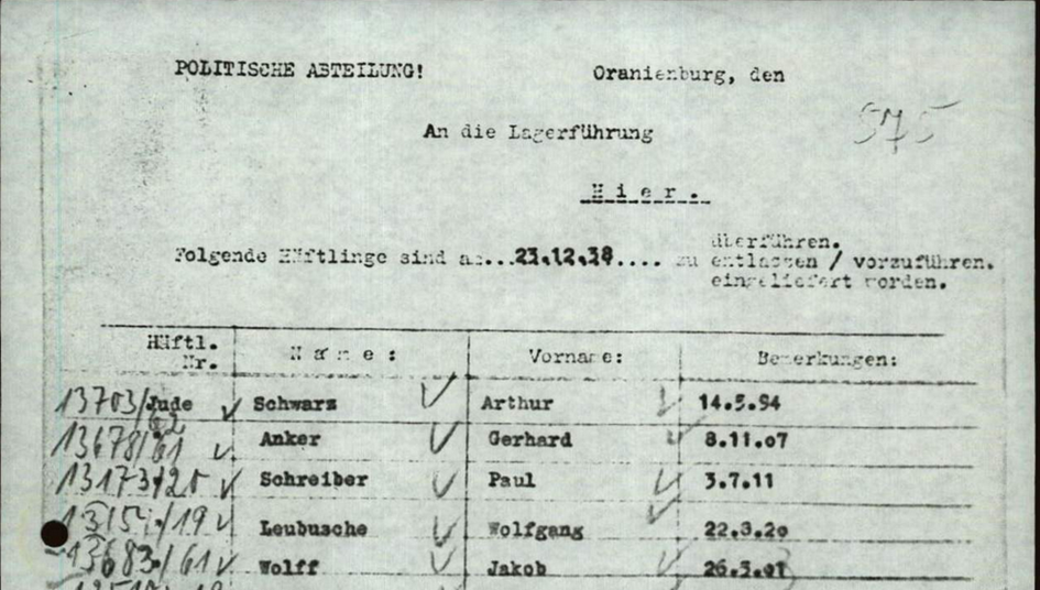 23.12.1938 Entlassung zusammen mit Kurt Lewy und Werner Goldstein (13146) aus dem KL Sachsenhausen