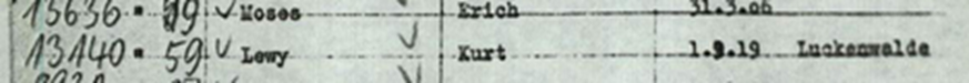 10.11.1938 Verhaftung von Wolfgang Leubuscher, Kurt Lewy (*1.9.1909) und Werner Goldstein (*26.3.1920) sowie zehn weiteren jüdischen Männern in Luckenwalde