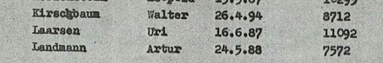 10.12.1941 Ankunft in Riga Skirotawa; in Skirotawa wurde Laarsen am Knie angeschossen. Fußmarsch ins Lager Jungfernhof